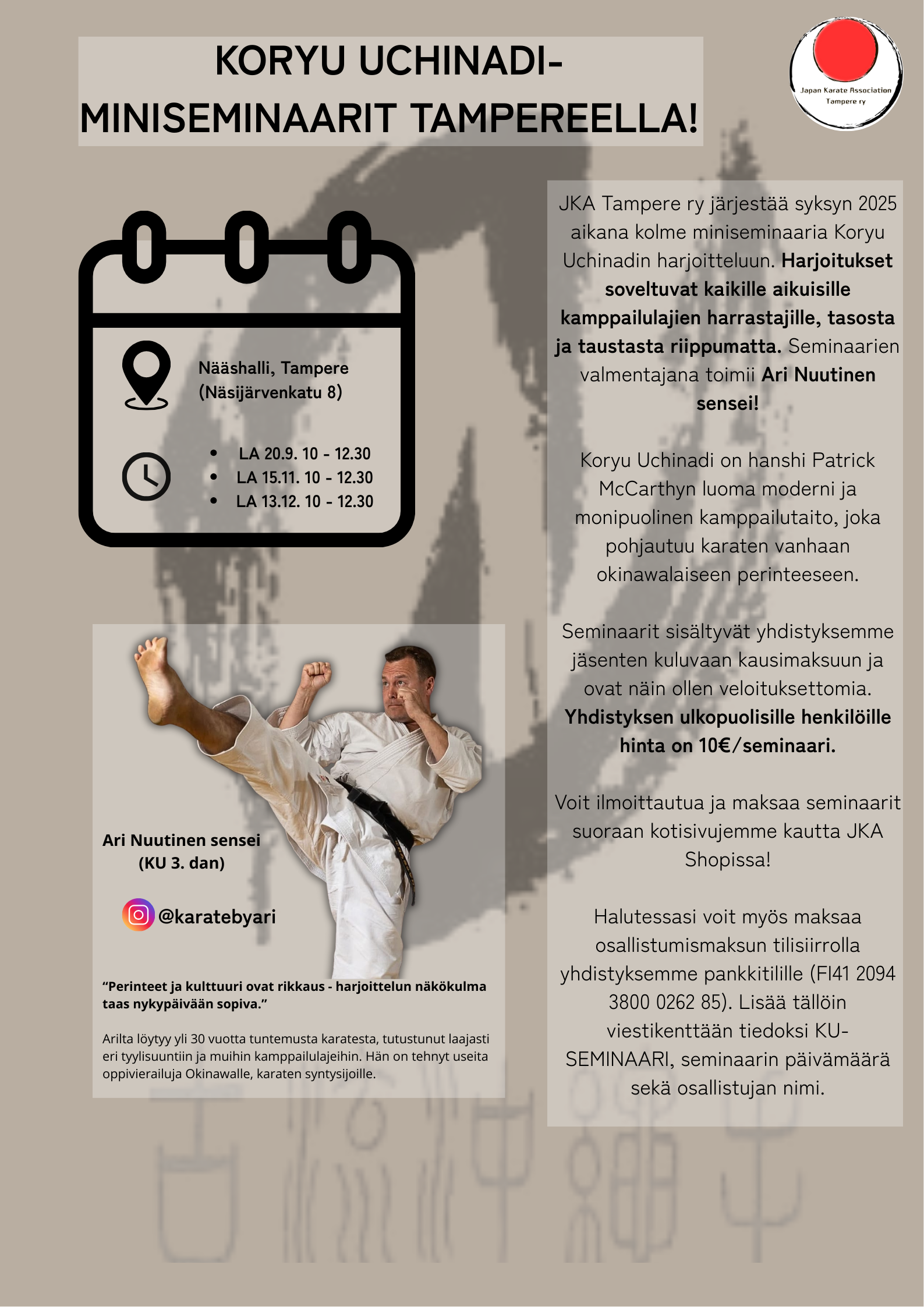 JKA Tampere on ainoa virallinen Koryu Uchinadi -seura Tampereella.